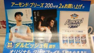 おまけ アーモンド・ブリーズ『ダルビッシュ有』クリアファイルおまけが店頭でもらえるキャンペーンの開催店はどこ?全2種類!