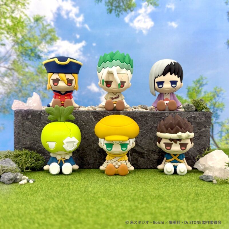 じ~っと見つめる千空達のラバーフィギュアはシークレットも!