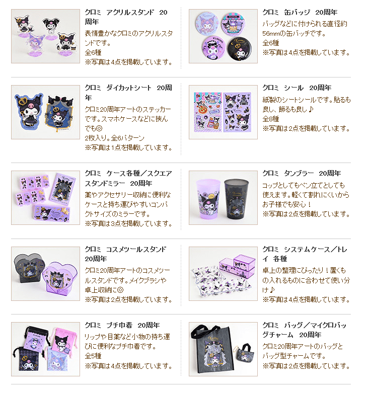今回はクロミ20周年の誕生日前ということもあり、クロミ商品多めです!