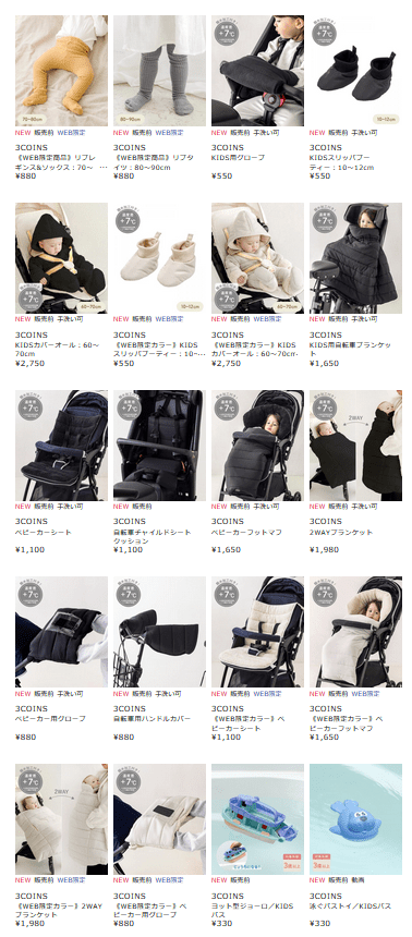 3COINS『親子でおでかけ便利アイテム』シリーズ!ベビーカーグッズ、クリップなども種類豊富!ベビーカー用のグローブ、自転車用ハンドルカバーなどが2025/11/1より新発売!