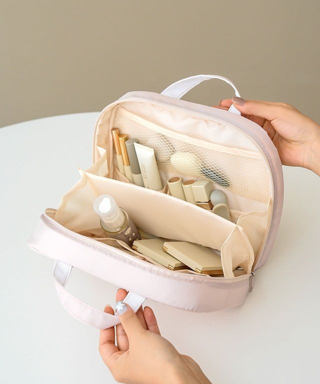 ●見た目はスリム、中身はたっぷり。大容量なのに閉じるとコンパクトな形状なので、ご旅行の際にもおすすめのコスメポーチ。