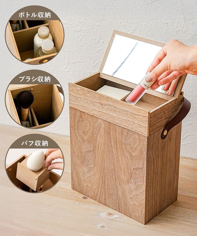 ●ボックス付きで綺麗に整頓できる大容量メイクボックス。