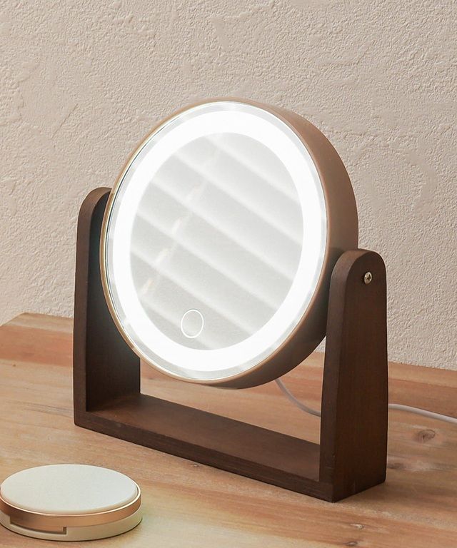 - 《電池式・USB給電》ウッド調LEDライト付きミラー/and us ¥1,650(税込)