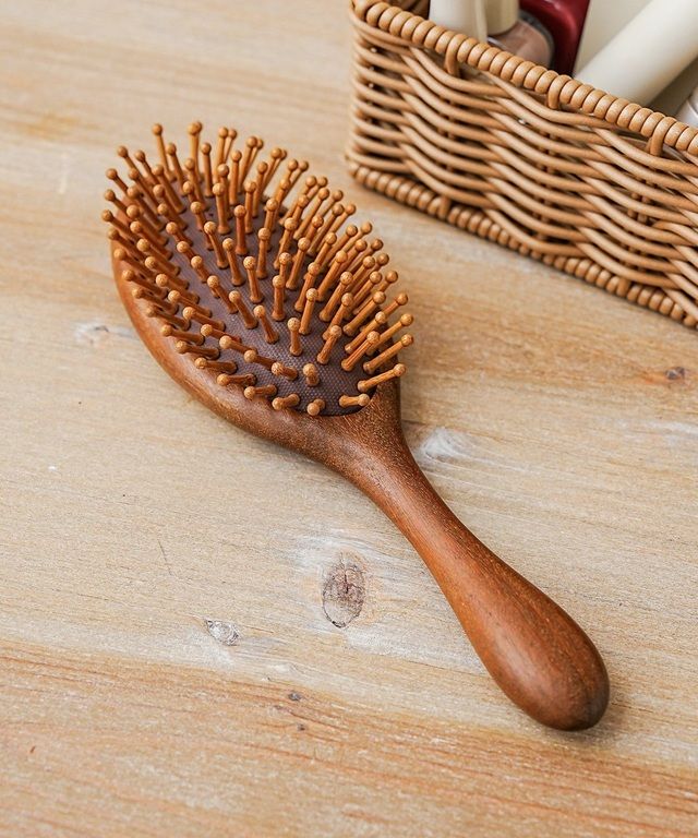 ●ブラッシングと頭皮ケアが一緒にできるウッドブラシ。