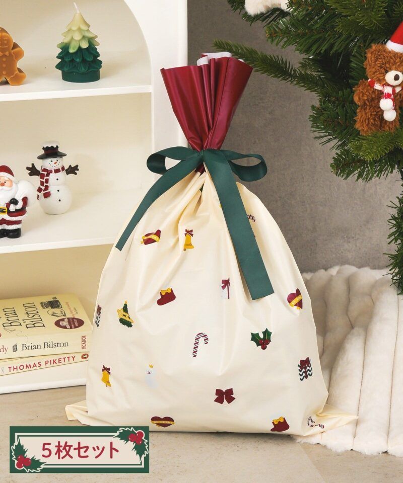 ●さまざまなクリスマスモチーフが散りばめられた、にぎやかで楽しい印象のラッピング袋です。