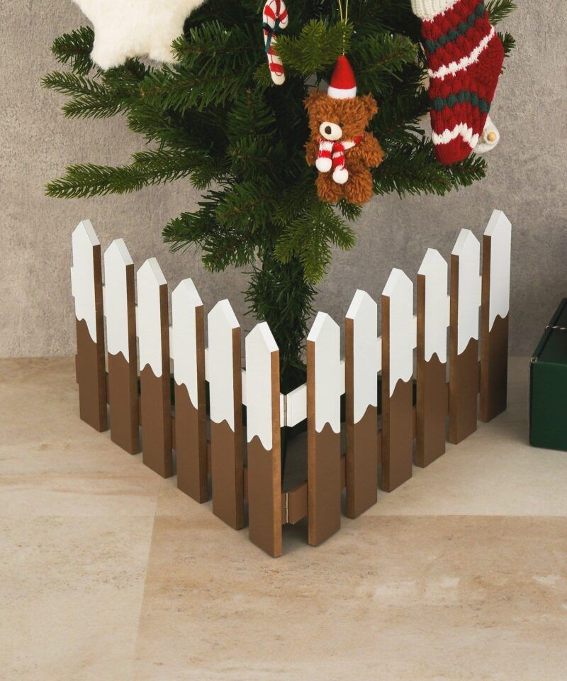 ●ナチュラルな木目調と白のペイントがツリーの根元にやさしいアクセントを添えるフェンスです。