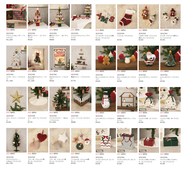 3COINS(スリーコインズ)では2025年10月14日(火)から、クリスマス商品の販売が開始します!