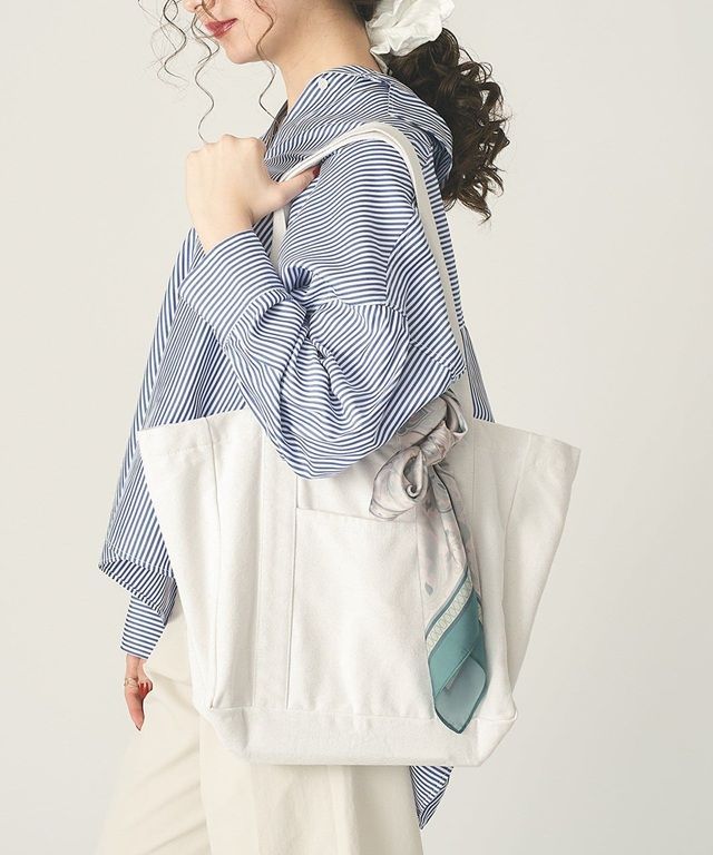 ●バッグの口を紐で絞るとくしゅくしゅしたデザインになるのが可愛いトートバッグ。