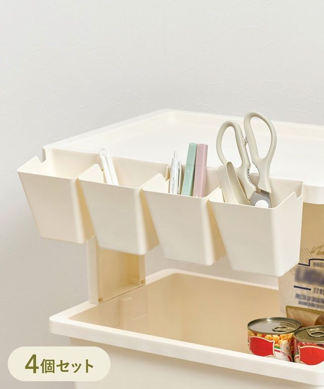 ●別売りのテーブルワゴンポケット4個セットを引っ掛ければ、小物入れやインナーケースを追加できます。