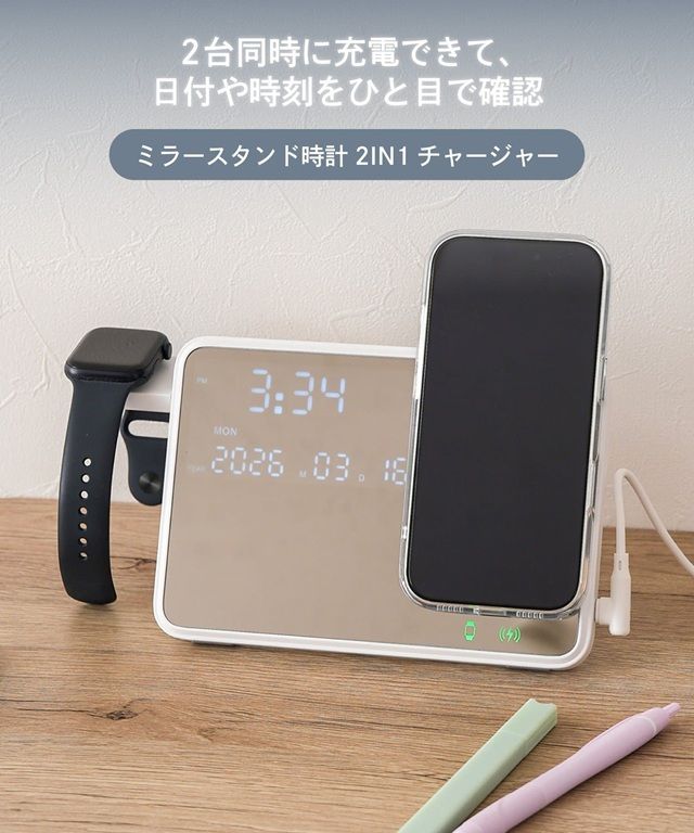 ミラースタンド時計2IN1チャージャー ¥3,300(税込)