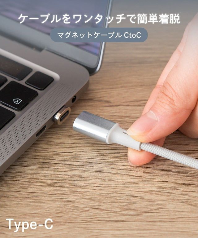 ●ワンタッチでケーブルの着脱ができる、マグネットCtoC充電ケーブルです。