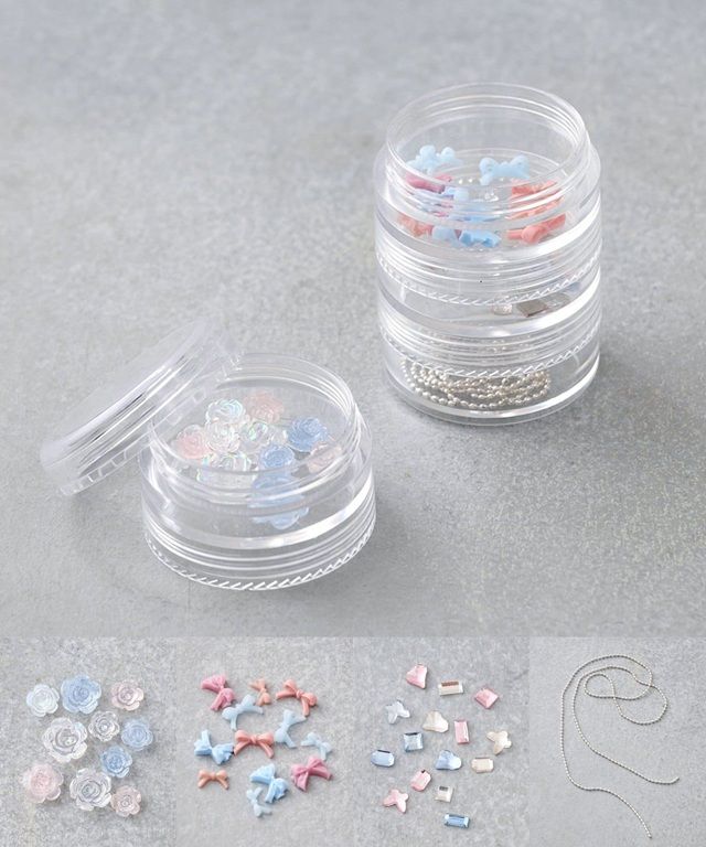 ●スタッキングしてパーツごとに収納できるケースが付いたネイルパーツセット。