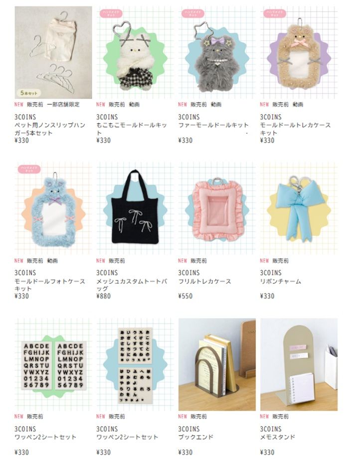 3COINS『自分で作る推し活グッズ』シリーズ!モールドールトレカケースキット、メッシュカスタムトートバッグ、フリルトレカケースなどハンドメイドできるグッズもカラー豊富に2026/4/13より新発売!