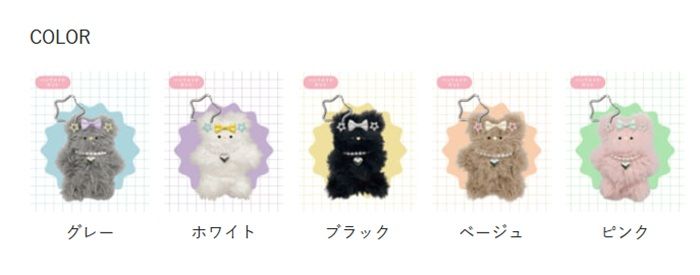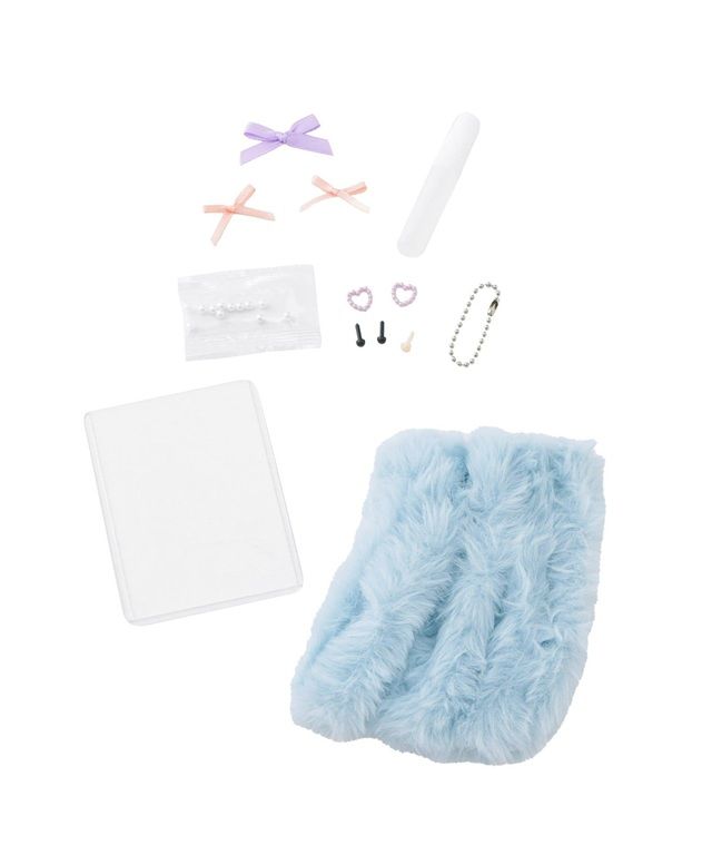セット内容:モール×1、顔パーツー式(目・鼻)、リボン×1、星パーツ×2、パールパーツ×23、ネックレス×1、カラビナ×1、接着用グルー×1