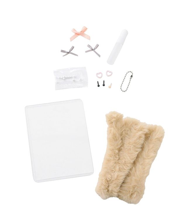 セット内容:モール×1、カードケース×1、顔パーツー式(目・鼻)、リボン大×1、リボン小×2、ハートパーツ×2、パールパーツ×12、ボールチェーン×1、接着用グルー×1