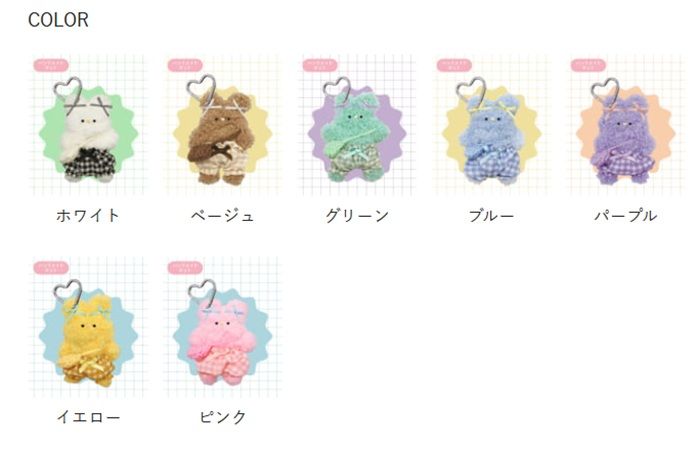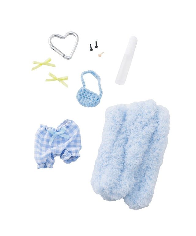 セット内容:モール×1、顔パーツー式(目・鼻)、リボン×2、ズボン×1、バッグ×1、カラビナ×1、接着用グルー×1