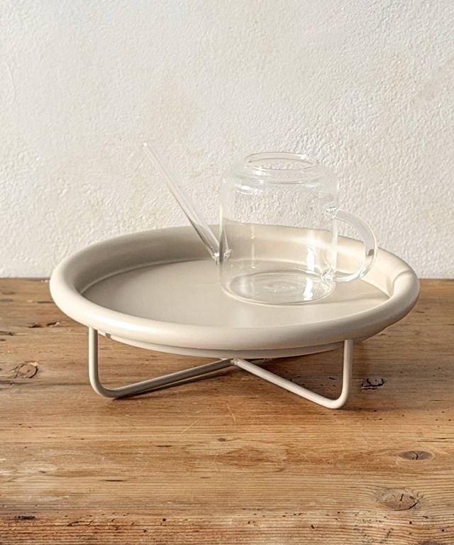 ●細身の脚と縁のある丸いトレーを組み合わせた、シンプルで使い勝手の良いアイアントレー。