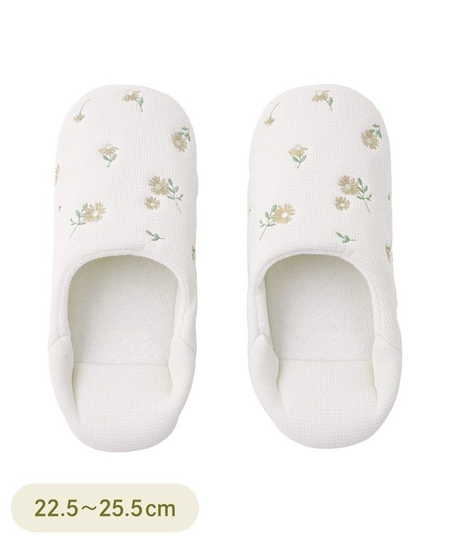 ●上品で可愛らしい花刺繍が、おうち時間の足元を華やかに演出します。