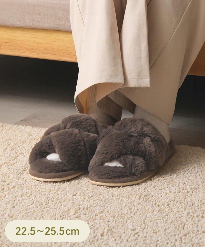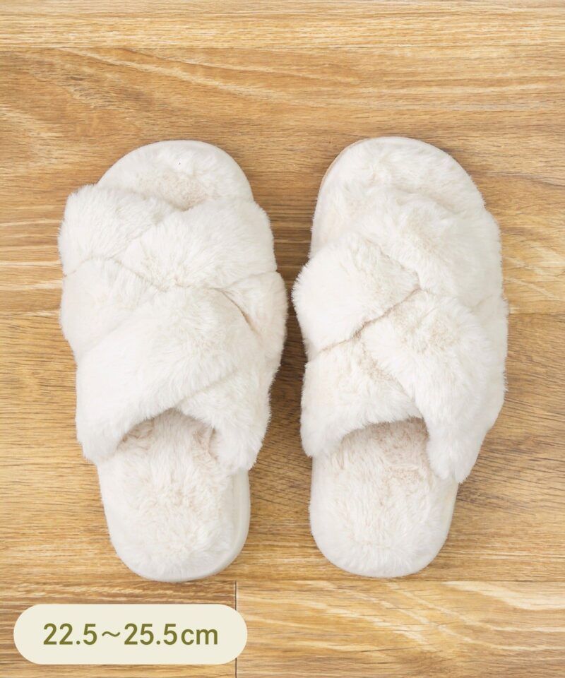 ●やさしいふわふわの肌ざわりで、心地よく履けるファーダブルクロススリッパです。