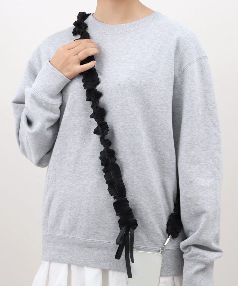 ●くしゅっとしたフリルが目を惹くスマホショルダー。