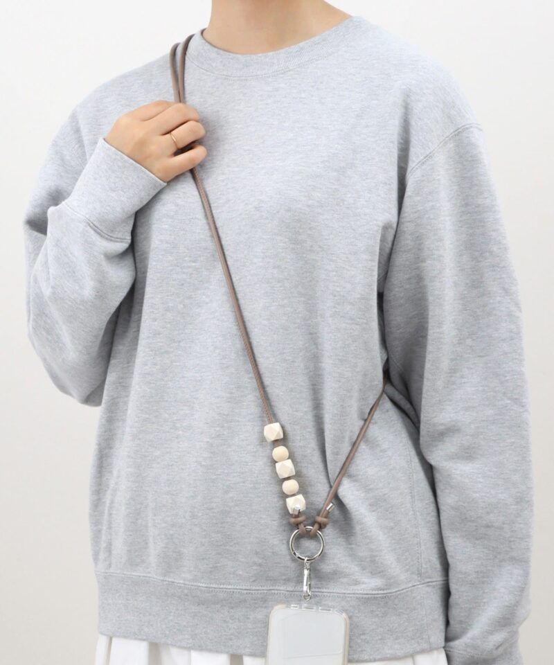 ●フェイクレザー×木製ビーズの組み合わせが魅力のナチュラルテイストなスマホショルダー。