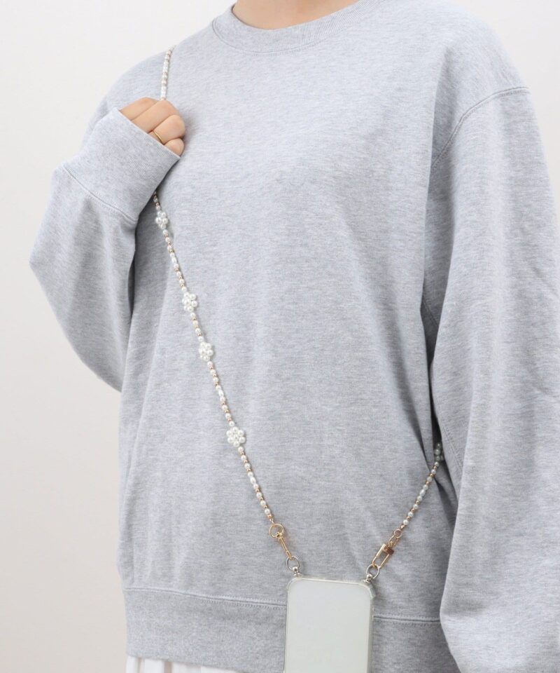 ●パールとビーズの輝きが華やかな、女性らしいデザインのスマホショルダー◎