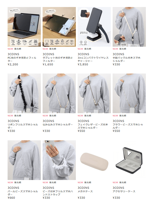 - 3COINS(スリーコインズ)『スマホグッズ』グッズシリーズ 発売日、スケジュール