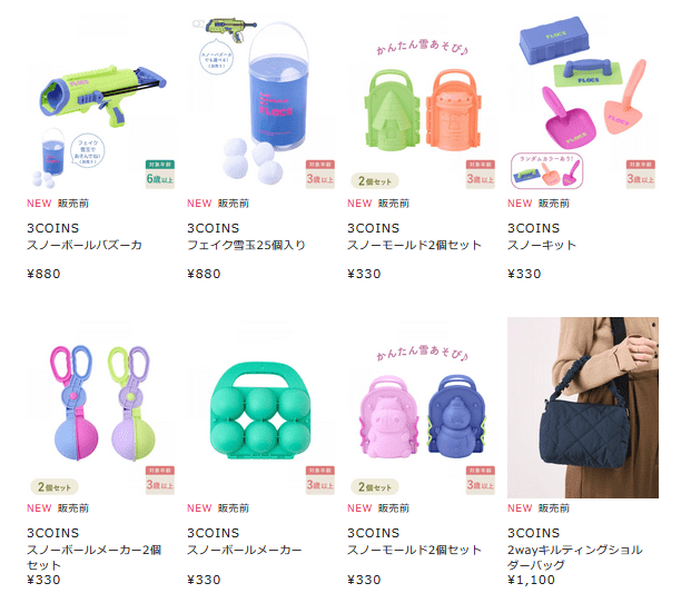 3COINS(スリーコインズ)『雪遊び(スノートイ)』商品の種類や口コミなどをまとめます!