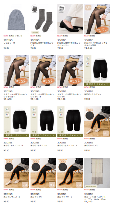 3COINS(スリーコインズ)『レッグウェア』裏起毛ソックス、ストッキング、レギンス、タイツなど冬グッズが2025年10月27日(月)より新発売!