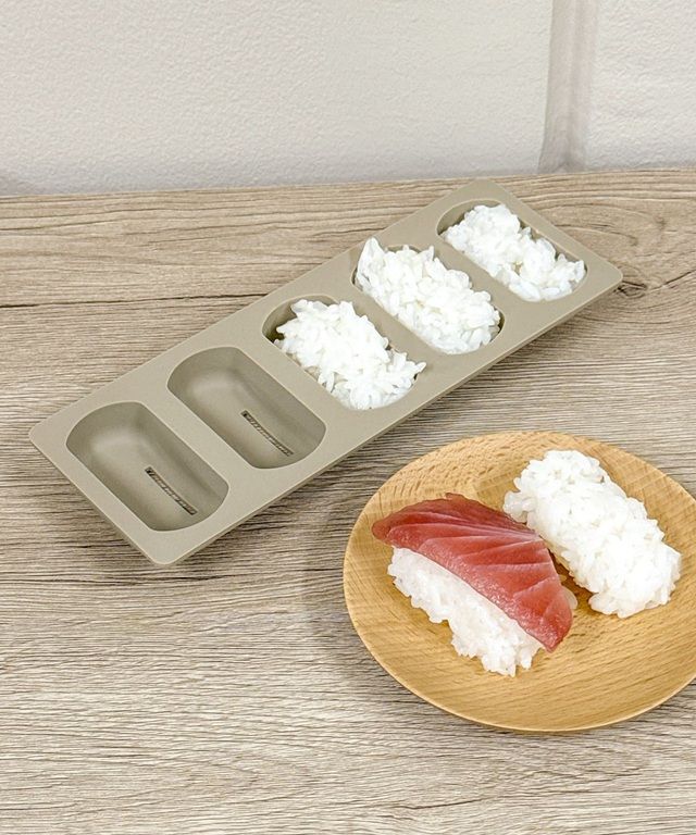 ●寿司飯を型につめるだけで均等な形のしゃりが5つ完成します。