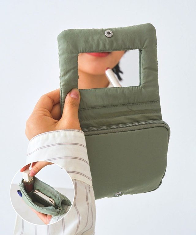 ●外出先でさっと確認できるミラー付きのポーチです。