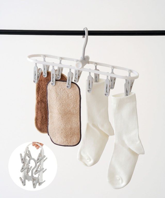 ●ピンチは12個付いており、靴下や下着などがまとめて干せます。