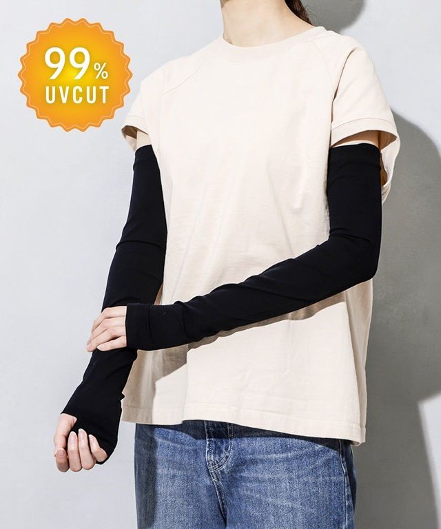 ●ロング丈で肘上までしっかりカバーします。
