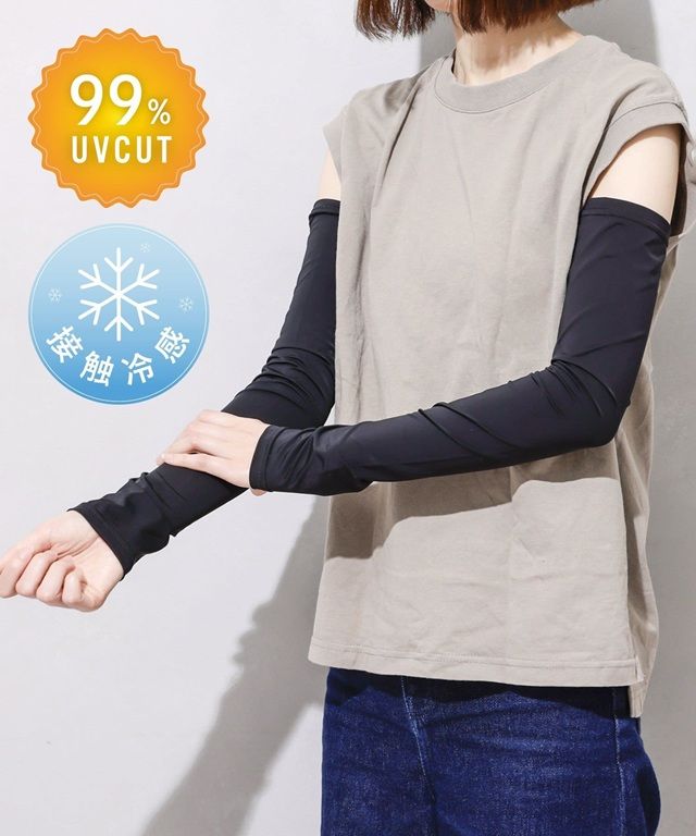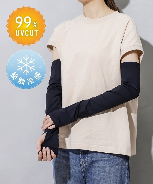 ●UVカット率99%以上で、紫外線からしっかり守るUV冷感アームカバー。