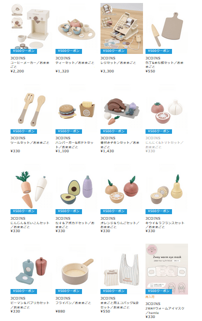 3COINS(スリーコインズ『木製おままごと』グッズ商品の種類や口コミなどをまとめます!