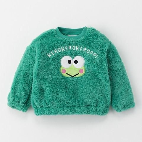 『けろけろけろっぴ』の「けろっぴ」のフェイスモチーフを使ったボア素材のアップリケデザインがかわいいです。