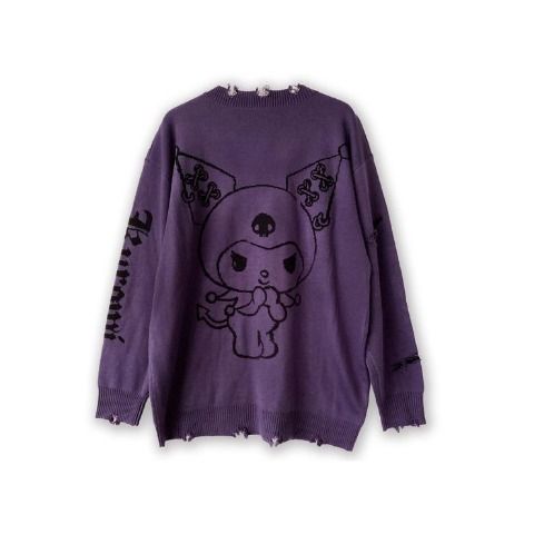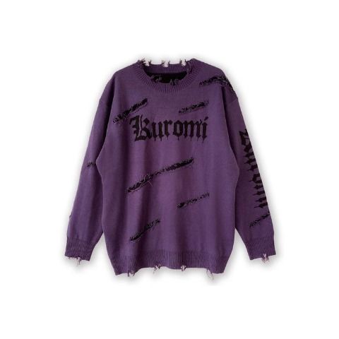 不規則なダメージ加工がモードな印象をアップさせるクロミのニットプルオーバー。
