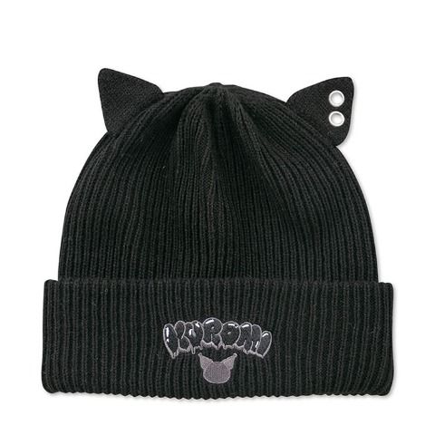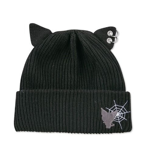 ニット帽本体に特徴的な耳とハトメリングがついています。