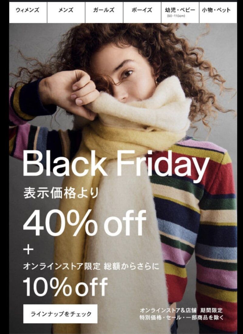 GAPがブラックフライデーセールで40%オフになってた pic.twitter.com/fP8QdlUgPe