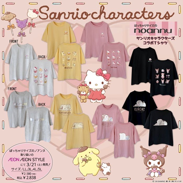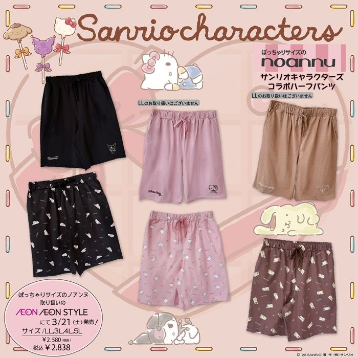 ぽっちゃりサイズのノアンヌに、サンリオキャラクターズのTシャツとハーフパンツが2026年3月21日(土)より新発売します!