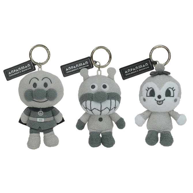モノトーンカラーがかわいいアンパンマンたちのぬいぐるみキーホルダーが登場!