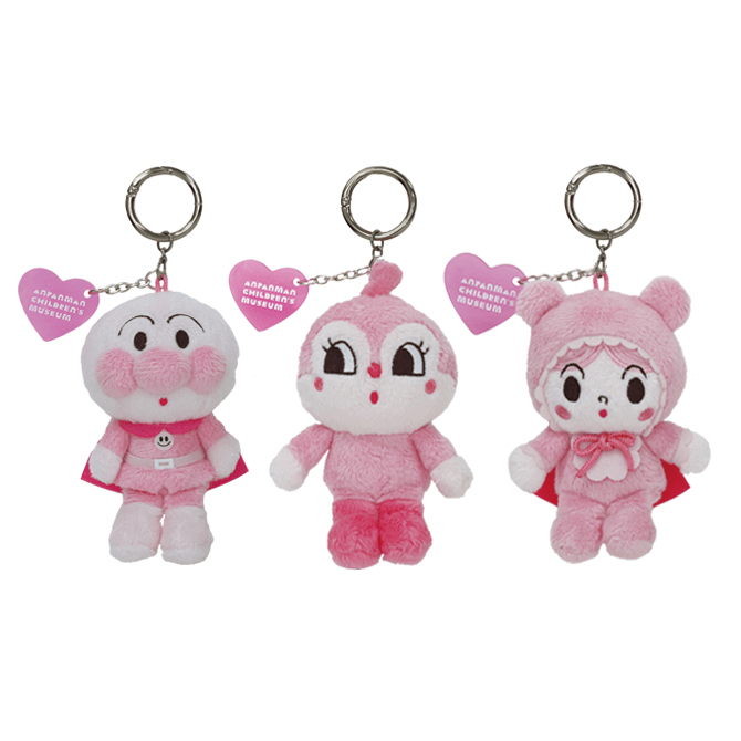 ピンクカラーがかわいいアンパンマンたちのぬいぐるみキーホルダーが登場!