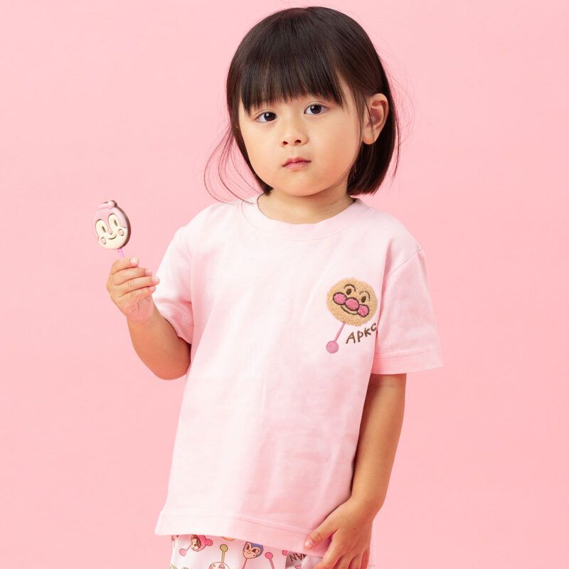 アンパンマンペロペロチョコをイメージしたワンポイントのさがら刺繍がかわいい半袖Tシャツ!