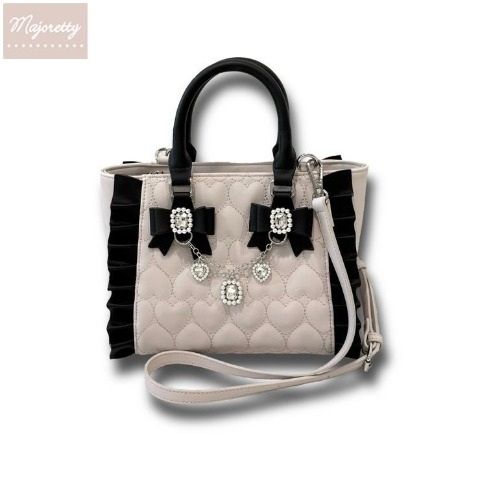 ハートのキルティングが可愛く、リボンやチェーンの装飾がポイントのトートバック!