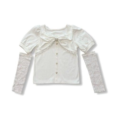 大きなリボン風デザインがポイントのアームカバー付きカットソー。