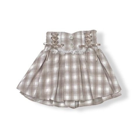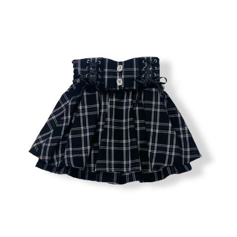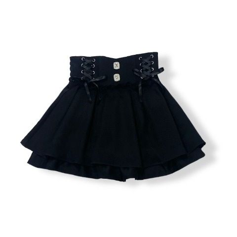 レースアップデザインがポイントのレイヤード風デザインスカート。
