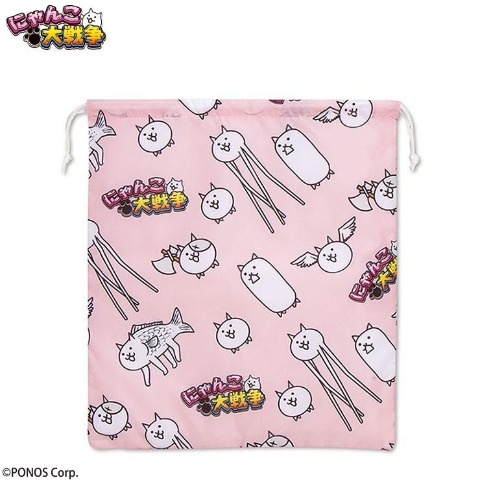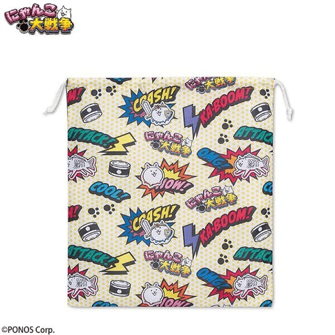 巾着L(にゃんこ大戦争) 900円(税込 990円)/巾着S(にゃんこ大戦争) 590円(税込 649円)