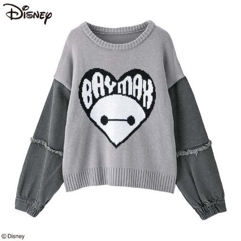 袖をデニムで切り替えた「ベイマックス」柄のセーターです。