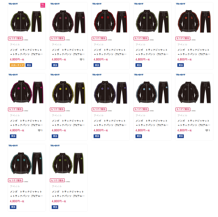 メンズ トラックジャケット+トラックパンツ(TVアニメ『ブルーロック』) 4,800円(税込 5,280円)