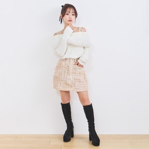 可愛いが詰まったオフショルニットプルオーバー。